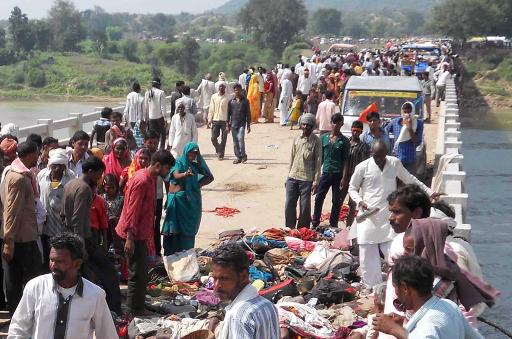 The disaster in Datia comes only seven years after another stampede outside the same temple when more than 50 people were crushed to death while crossing the river, after which authorities built the bridge.