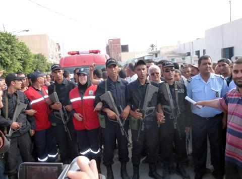 Public anger has been mounting over the violence, with two offices of the ruling Ennahda movement torched on Thursday as the police officers were laid to rest.