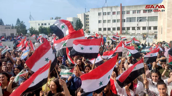 The Syrian students affirmed their support to the Palestinian Cause as a core and central issue for all Arabs until liberating the territory and establish the Palestinian state with al-Quds [Jerusalem] as its capital.